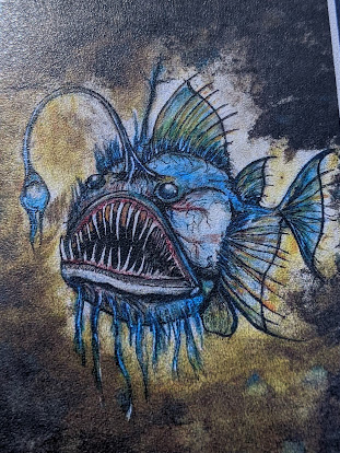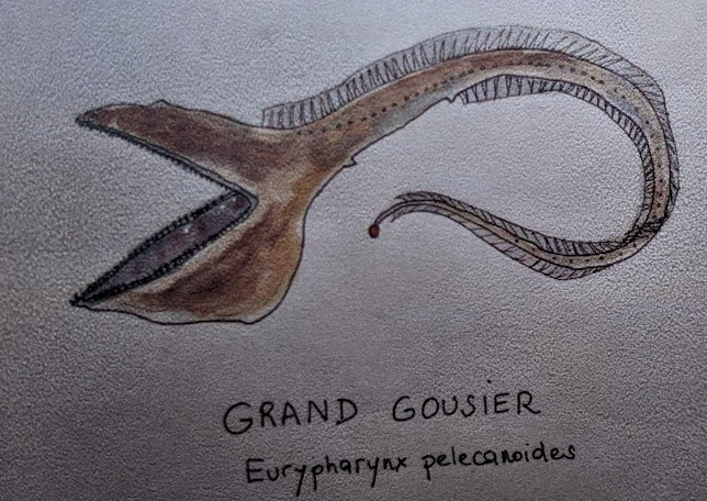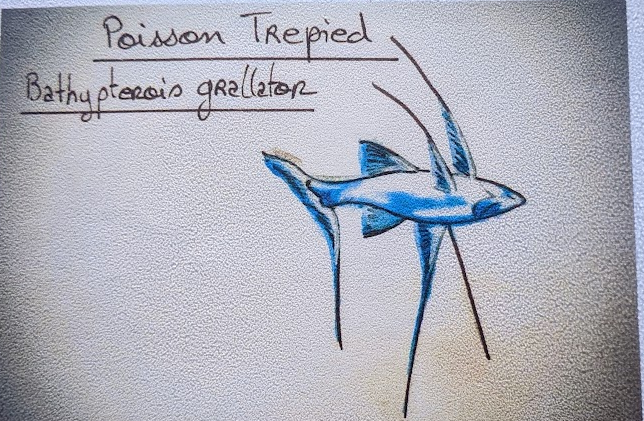 Avec son bâton, tout le long de la marche, Géraldine nous a aidés à nous repérer dans les différentes zones océaniques: zones hadale, abyssale, bathiale, mésale et littorale… et à chaque arrêt figurant un palier supplémentaire, en déployant sur le sol son joli paréo aux motifs marins, elle nous invitait à regarder l’océan et ses merveilles pour rencontrer des paysages aquatiques mystérieux … et leurs habitants qui sont tous des génies de l’adaptation !