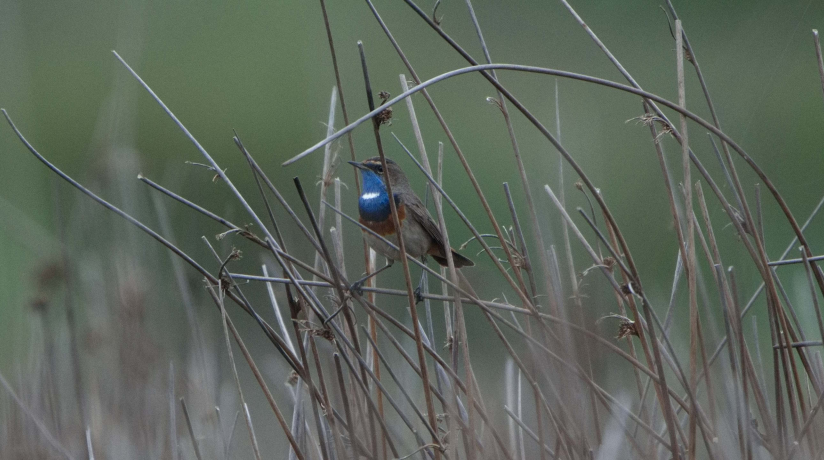 Grâce à Olivier, notre guide, nous avons pu entendre et voir des passereaux nicheurs des marais dont la bergeronnette printanière, petit citron perché sur les ronciers et la gorgebleue à miroir, bijoux étincelant !